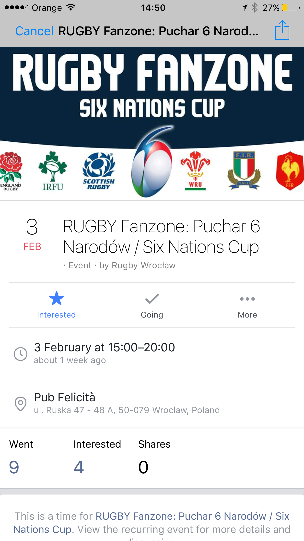 And so on Saturday, I make the trek into the city and rock up at the Pub Felicita, a buzzing little bar with a good selection of beers which is the meeting place for members and supporters of Wroclaw Rugby Club.