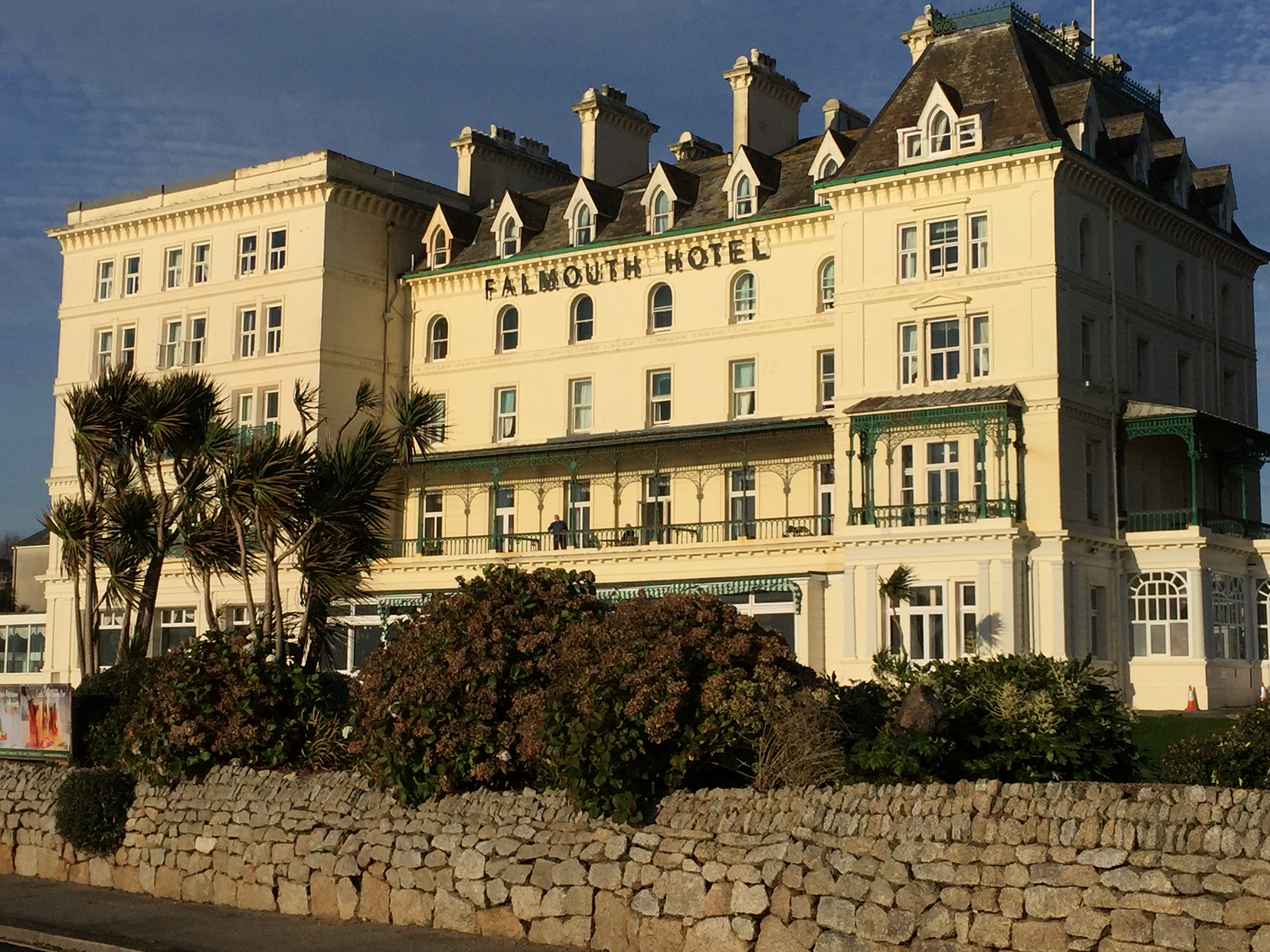 It’s Monday afternoon and I check into the three star Falmouth Hotel, selected for the following reasons: a) it’s cheap, b) it’s located bang on the sea front with good access to the Cornwall coastal path and, c) it has a large secure car park.