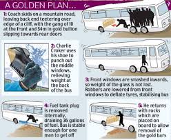 And here, folks, finally the diesel in the bus runs out, the engine splutters and stalls, and as the last robber exits the front door, it plunges over the ravine delivering the gold to the Mafia waiting at the bottom. And this — if you didn’t already know it — was, according to Michael Caine, the alternative ending.